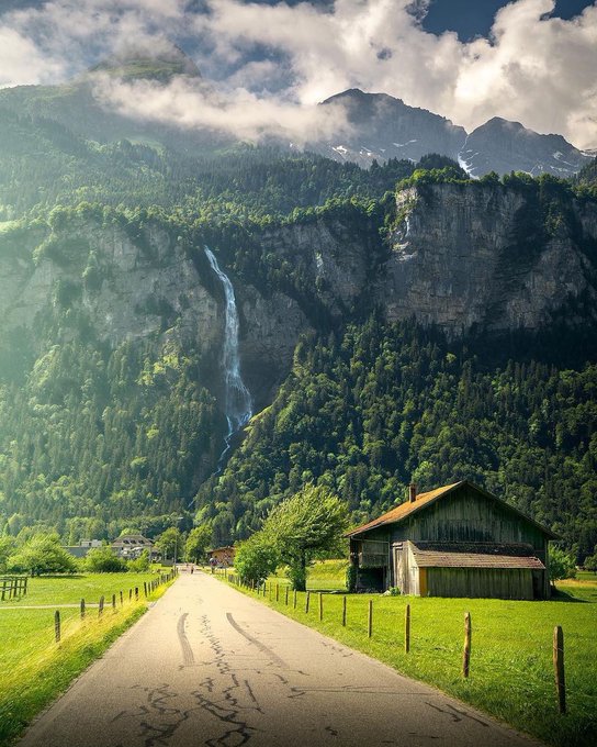 こちらはTwitterアカウント「Stunning Pictures(@dazzlingpics)」さんが投稿した写真「スイスのベルナー・オーバーラント(Bernese Oberland)にある滝『Oltschibachfall[独語]』」です。