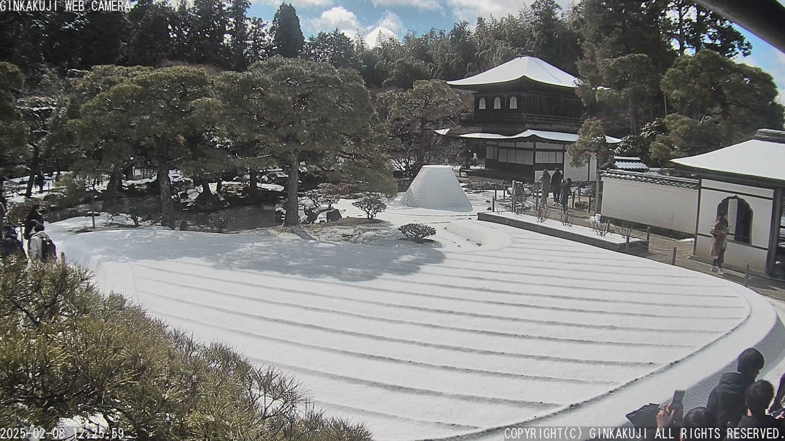 Twitterに投稿された写真「雪の銀閣寺の2月8日ライブカメラ」 2025年02月09日 京都府 京都市 銀閣寺 雪景色 こちらはTwitterアカウント「ライブカメラDB(@livecam_db)」さんが投稿した「雪の銀閣寺(東山 慈照寺)の2月8日ライブカメラ」の写真です。
