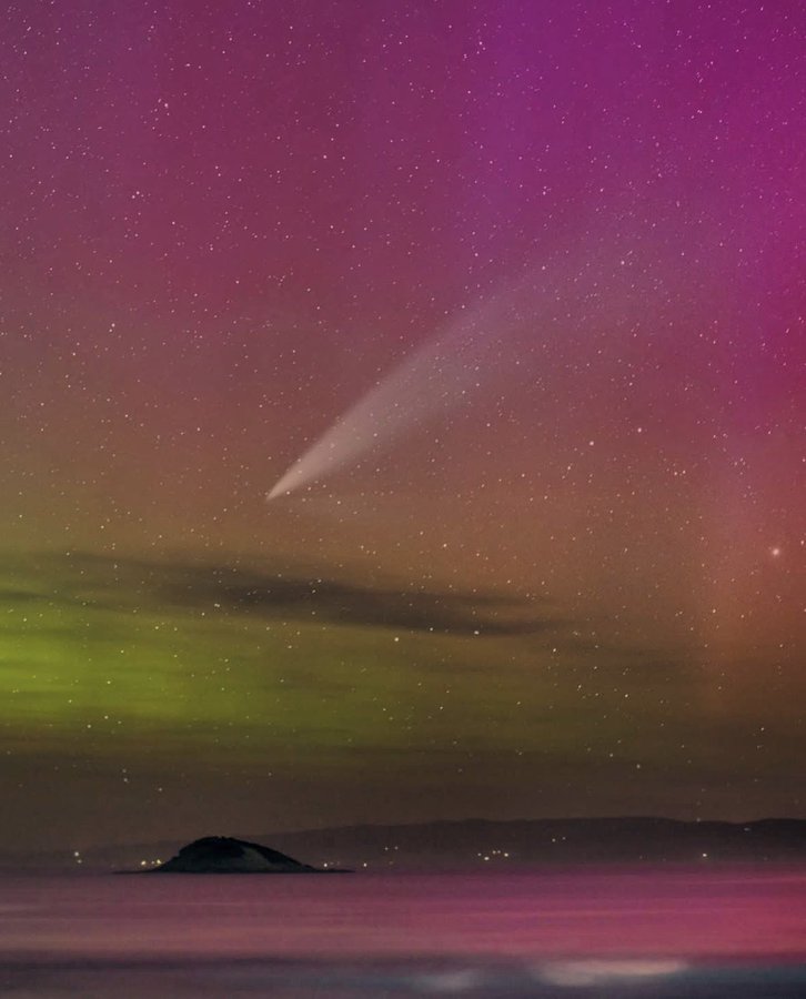 こちらはTwitterアカウント「Parc Astronòmic Prades(@parcastroprades)」さんが投稿した写真「ニュージーランドでオーロラと彗星『C/2024 G3 (ATLAS)』」です。